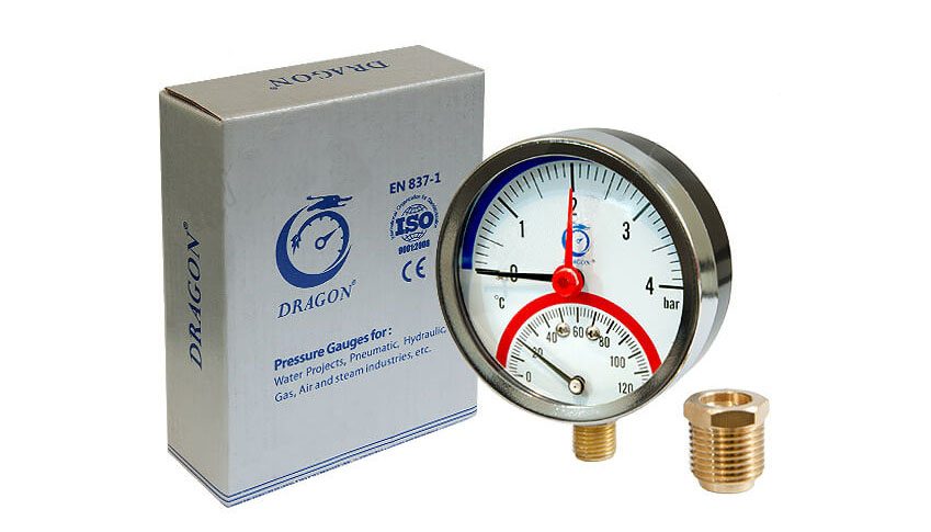 ترمومانومتر عمودی دراگون در واقع گیج فشار و دما به صورت همزمان می باشد و اتصال آن از نوع عمودی می باشد. هر کدام از صفحه نمایشگر ها دارای نشانگر مخصوص به خود می باشد و خواننده به راحتی می تواند اعداد را بخواند.
