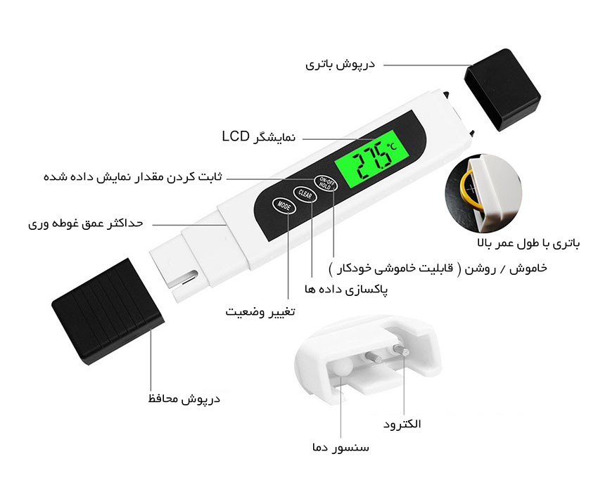 نحوه اندازه گیری مقادیر سختی ، هدایت الکتریکی و دمای آب توسط سختی سنج مدل YL-TDS-2 :