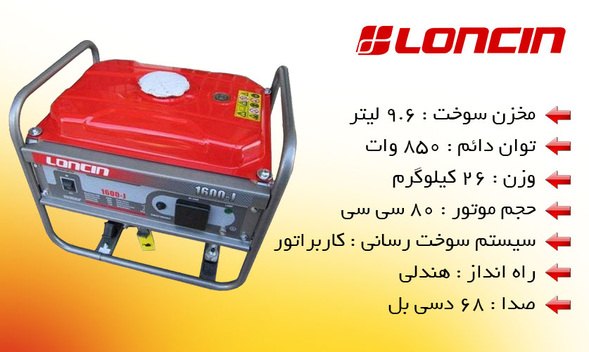 موتور برق 0.85 کیلووات لانسین LC1600 JS یا ژنراتور خانگی در رده موتور برق های با توان پایین یا قدرت پایین قرار می گیرد. توان آن فقط 850 وات است که آن را جهت استفاده های کم و اضطراری مناسب ساخته است. منظور از توان 850 وات این است که این ژنراتور قابلیت روشن کردن به عنوان مثال 8 عدد لامپ 100 واتی به طور همزمان را داراست.