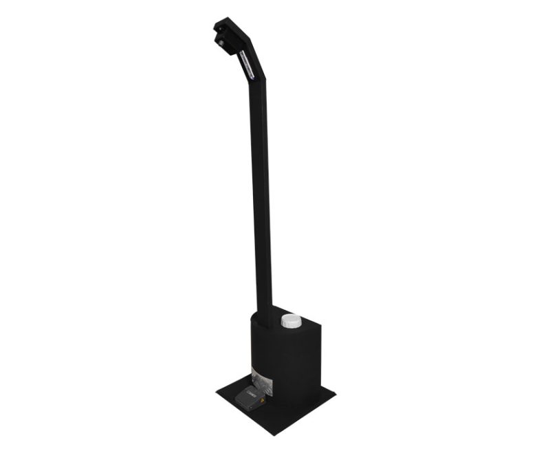 یک نازل پلاستیکی در هد این دستگاه محلول پاش پدالی استفاده شده است که محلول ضد عفونی کننده را به صورت پودری اسپری می کنند. پودری کردن محلول ضد عفونی کننده از این نظر بسیار اهمیت دارد که در مصرف الکل بسیار صرفه جویی می شود و بیش از 2500 بار یک حجم مخزن را اسپری می کند. در بدنه این محصول از سه چراغ LED آبی رنگ استفاده شده است که در هنگام قرار دادن پا بر روی پدال روشن می شود. به دلیل حجم مخزن بالایی که این دستگاه دارد برای اماکن پر رفت و آمد مانند ادارات، مدارس، مساجد، سالن ها و اماکن تفریحی- تجاری مناسب می باشد. ضمن اینکه چون دستگاه پدالی بوده و به صورت مکانیکی عمل می کند هزینه تعمیر و نگهداری به مراتب پایین تری خواهد داشت.