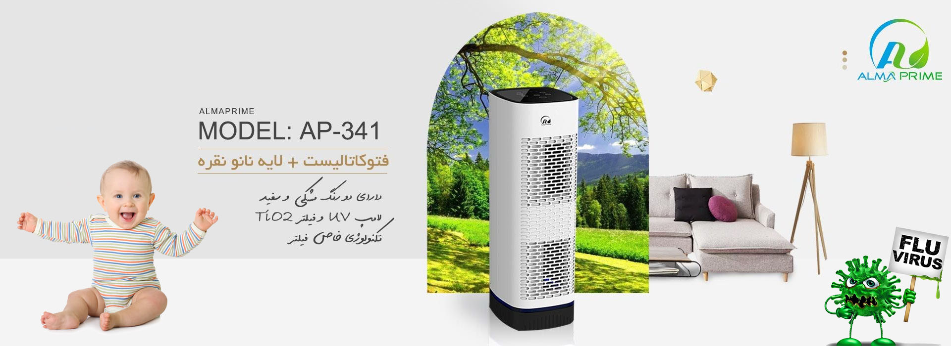 دستگاه تصفیه هوا آلماپرایم مدل AP341 توانایی تصفیه هوای 68 مترمربع در ساعت را داراست!